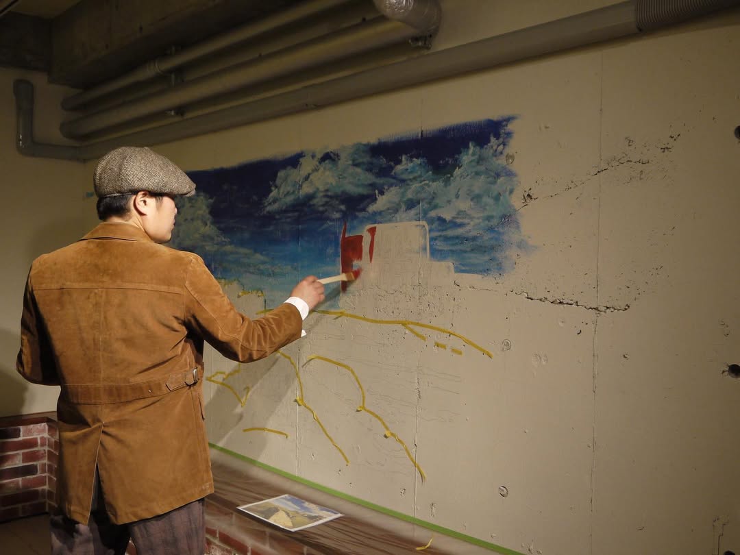 • 依頼内容:お店にあった「ビンテージ感」「ゴルフ」をイメージする壁画を描いてほしい、とのご依頼。