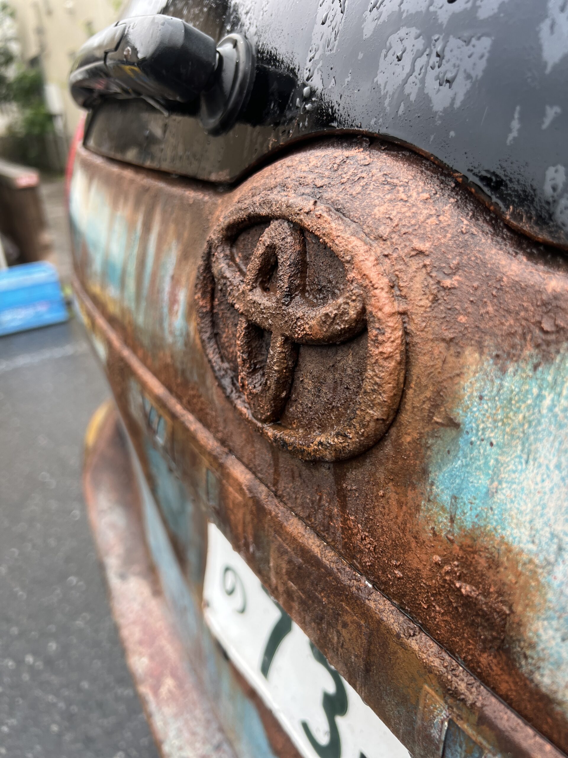 『ボロボロでサビだらけ とある街のトヨタ「ウィッシュ」が二度見不可避すぎる エイジング塗装で職人技をアピール』